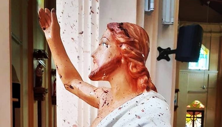This figure of the risen Christ in San Sebastian’s chruch in Katana carries the blood of the faithful murdered there. This was one of the three churches in Sri Lanka, which were the target of the terrorist attacks on Easter Sunday.