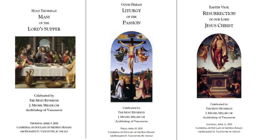 During the Triduum we are invited to meditate on the Mysteries of our redemption: the passion, death and resurrection of Our Lord. During the COVID-19 pandemic many of us will find this to be a challenging Holy Week, but at the Cathedral we want to provide not only the streaming of our ceremonies, but also the booklets for those ceremonies so that you can prepare your heart and enter more deeply in these these mysteries that accomplished our salvation.